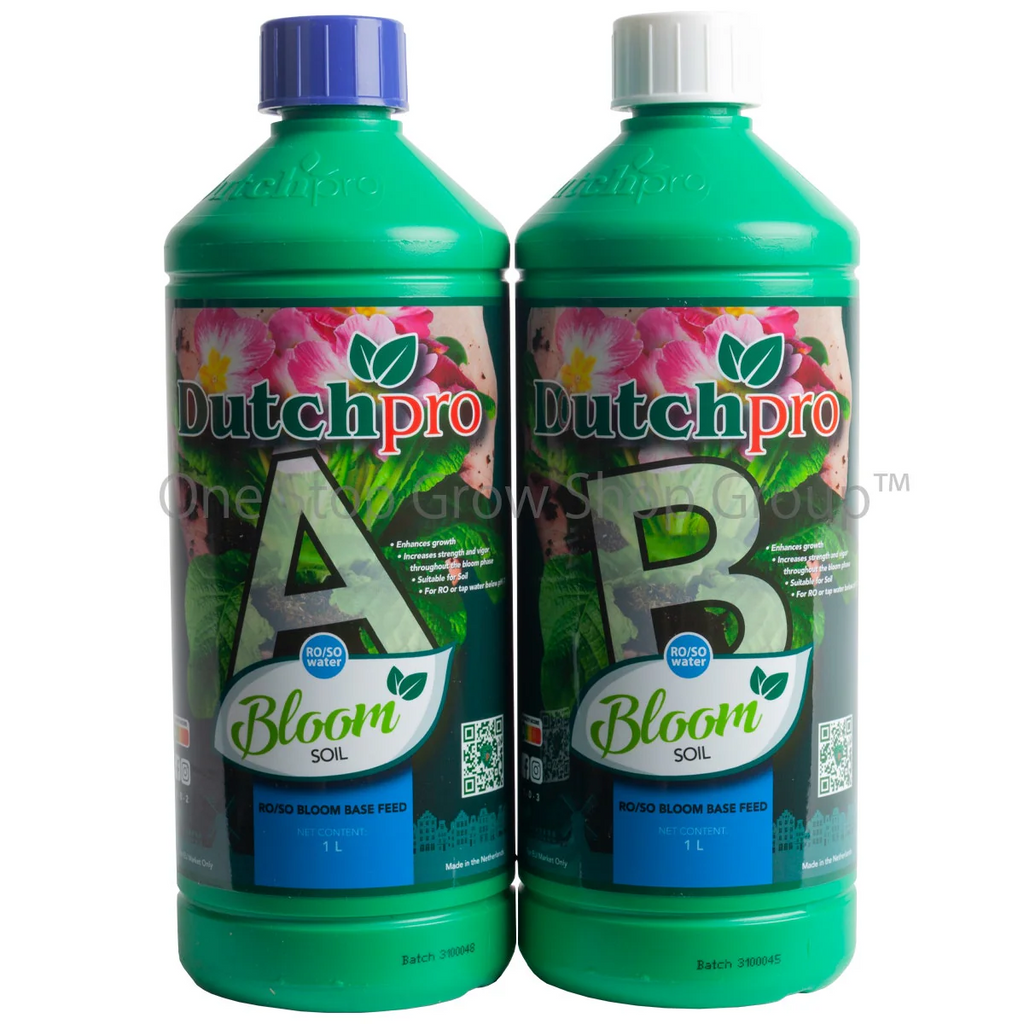 Dutch Pro Soil Bloom A-B is a professional-grade, two-part nutrient system developed for use in soil and compost-based media. Each part (A and B) contains complementary nutrients, and when mixed properly with water they deliver a rich spectrum of elements plants need during flowering, including phosphorus and potassium to drive strong bud and fruit formation.