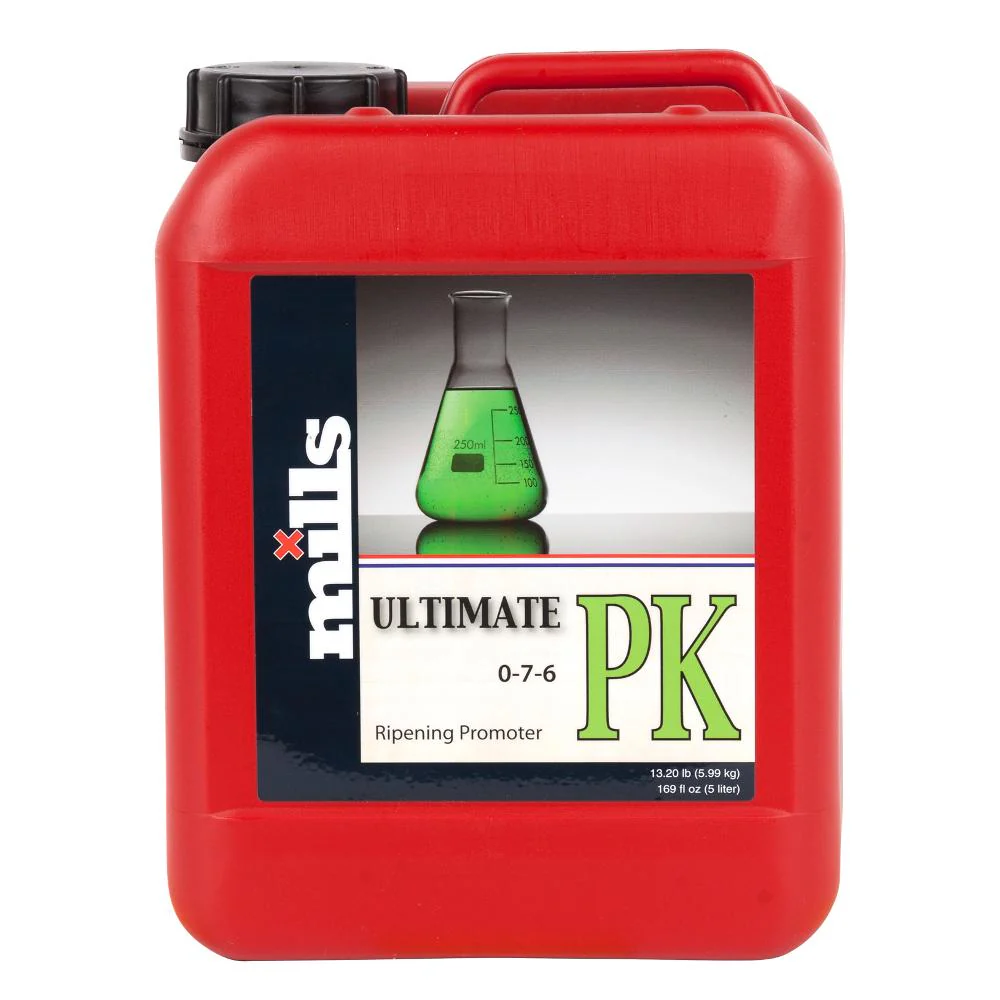 Mills Ultimate PK is a concentrated phosphorus (P) and potassium (K) additive, designed to support the final stages of flowering. By delivering high levels of these key nutrients, it encourages larger, denser flowers, improved fruit set and stronger overall plant structure.